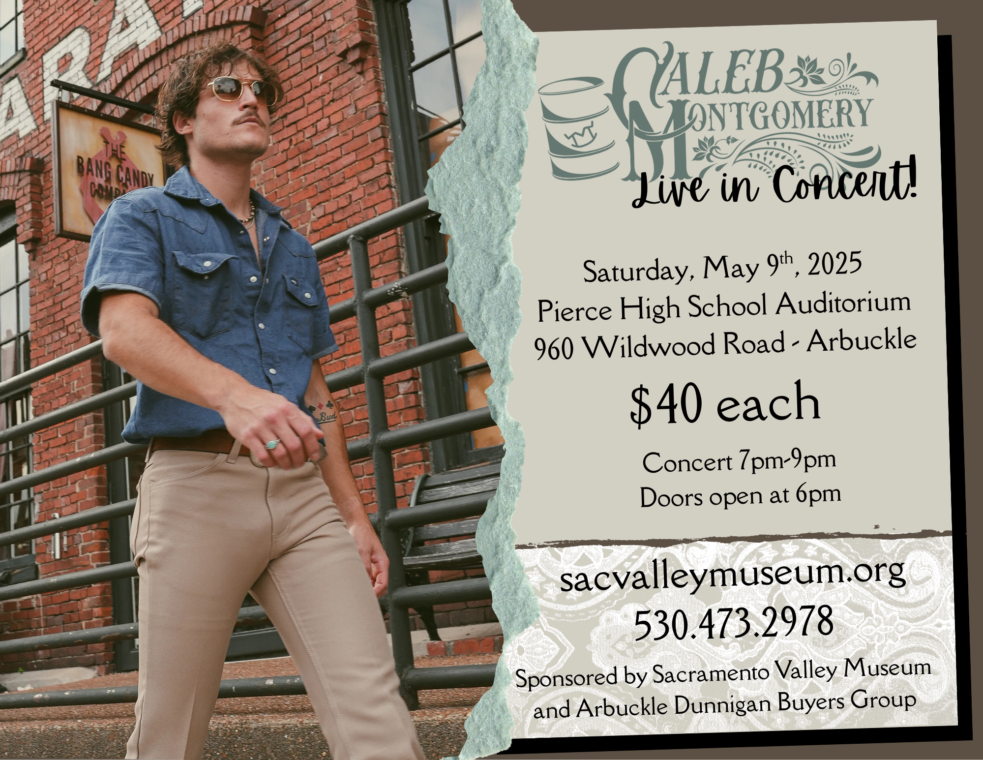 Susanville’s own Caleb Joel Montgomery will perform at the Pierce High School Auditorium on May 9th at 7:00pm! Reserve your tickets through the button below. If you would like to assist us in putting on our spring concerts, sponsorships are also available for purchase through the same link!